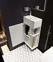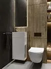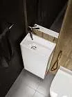Компактная мебель с уникальными габаритами - глубина тумбы всего 30 см. Мебель выполнена в современном минималистичном стиле, для которого характерны правильные геометрические формы, рациональность и эргономичность. Специально продуманная конструкция без ручек позволяет создать цельный легкий образ, не утяжеленный фурнитурой и дает возможность гармонично вписаться в любой интерьер. Для бережливой повседневной эксплуатации, тумбы оснащены демпферами и дверными петлями с доводчиками, обеспечивающими бесшумное и мягкое закрывание. В комплекте идет раковина из полимерной керамики. Решение идеально подойдет в гостевой санузел или маленькую ванную.