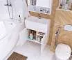 Компактная мебель Mira с уникальными габаритами - глубина тумбы всего 30 см. Мебель выполнена в современном минималистичном стиле, для которого характерны правильные геометрические формы, рациональность и эргономичность. Специально продуманная конструкция без ручек позволяет создать цельный легкий образ, не утяжеленный фурнитурой и дает возможность гармонично вписаться в любой интерьер. Для бережливой повседневной эксплуатации, тумбы оснащены демпферами и дверными петлями с доводчиками, обеспечивающими бесшумное и мягкое закрывание. В комплекте идет раковина из полимерной керамики и специализированный регулируемый телескопический сифон.