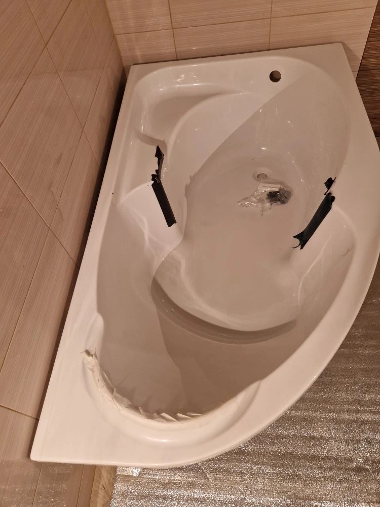 Шикарная ванна. На всякий случай помогал в подъеме и перемещении ванны в доме, что б не покоцали))) В комплекте инструкция для всех исполнений ванн. Удачно выбрал полный комплект по адекватной цене : ванна, каркас, боковой щит, сифон с донным клапаном - красивый. В описании не нашёл, но ванна имеет правильные углы скосов в верхней части и нижней для отвода воды в нужных направлениях. Ванна укреплена ДСП в нижней части и по бортам. Я ещё её виброизолом покрыл, стала как чугунная по ощущениям. Крепёж к стене в комплекте не пригодился - вклеил на герметик, так как плитка уже была выложена по периметру.