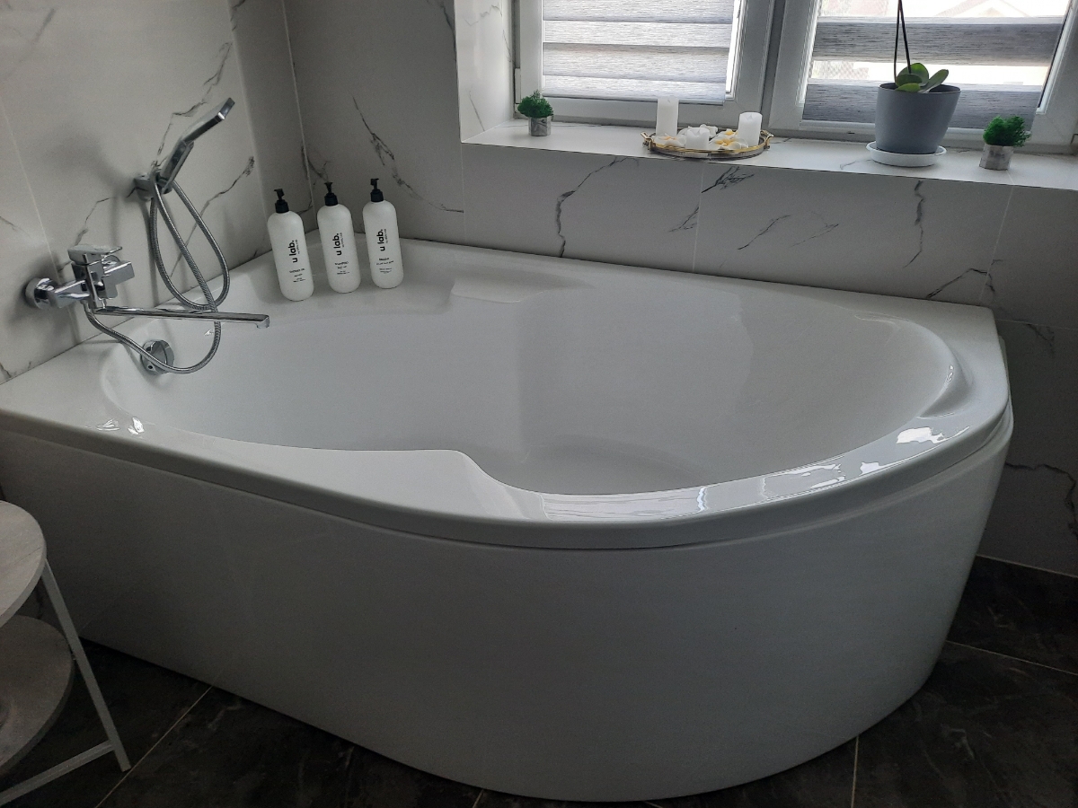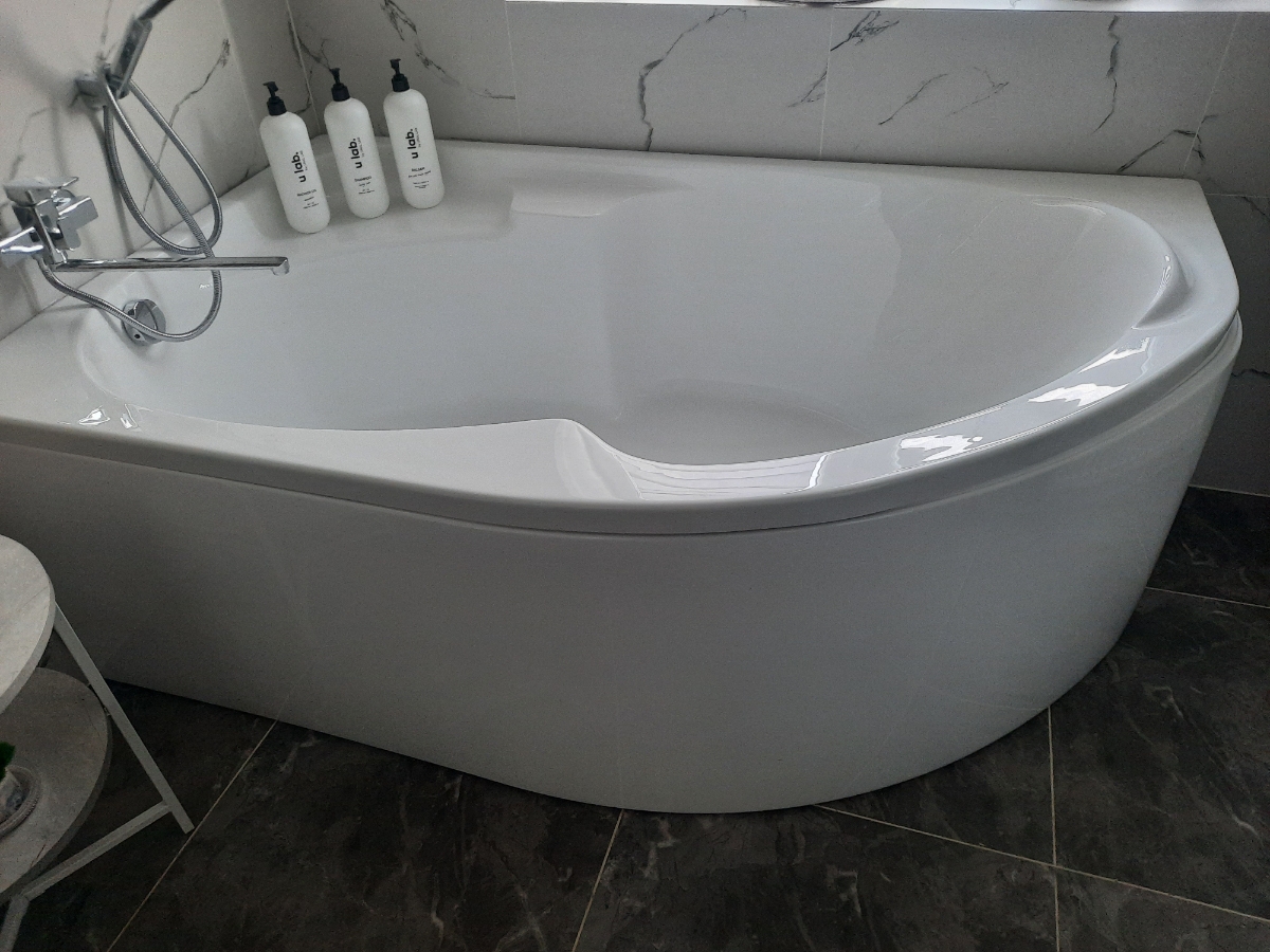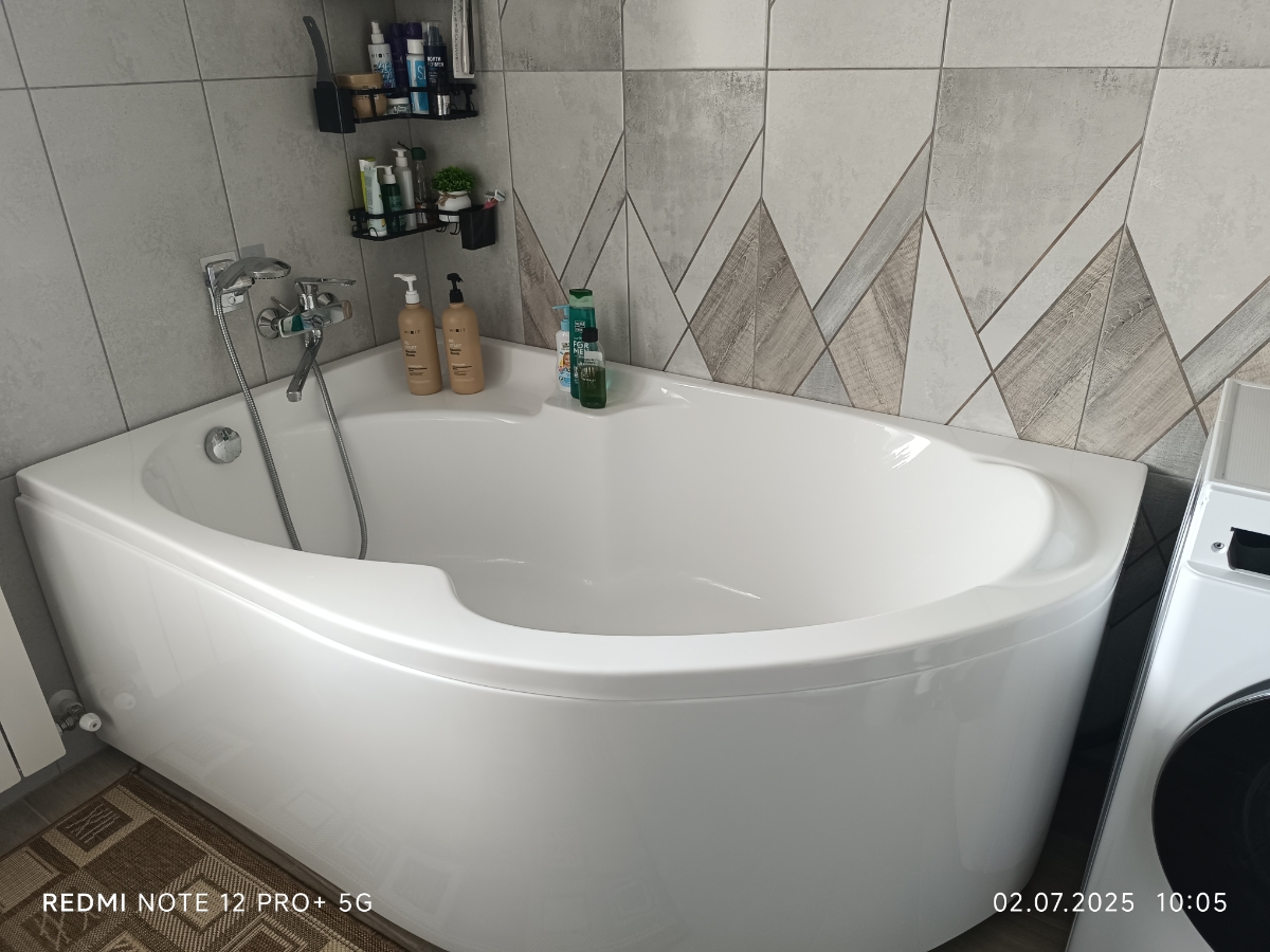 От ванны просто в восторге. Доставили вовремя. Занесли в дом. Упакована в картонную коробку, обтянута плёнкой прозрачной, чтобы не царапалась. Мои мужчины вдвоём установили часа за два. Пришлось подумать над инструкцией - не совсем понятно, какая из картинок относится к нашей ванне, не совсем понятна установка отдельных деталей. Сначала были лишние детали и ножки не фиксировались. Но потом разобрались. Очень переживала, что будет хлипкий каркас (имеем негативный опыт с душевой кабиной) или будет прогибаться дно (вес и рост у моих мужчин солидный - 140 кг и 190 см). Но! Ничего под дно не подкладывали больше для устойчивости - только штатный каркас - ничего не болтается и не прогибается. Объём большой, сидеть удобно. Муж сказал, что так комфортно и свободно себя в ванной не помнит. Нам очень нравится. Обратите внимание на высоту, для кого-то это может проблемой - например, для пожилых людей.
