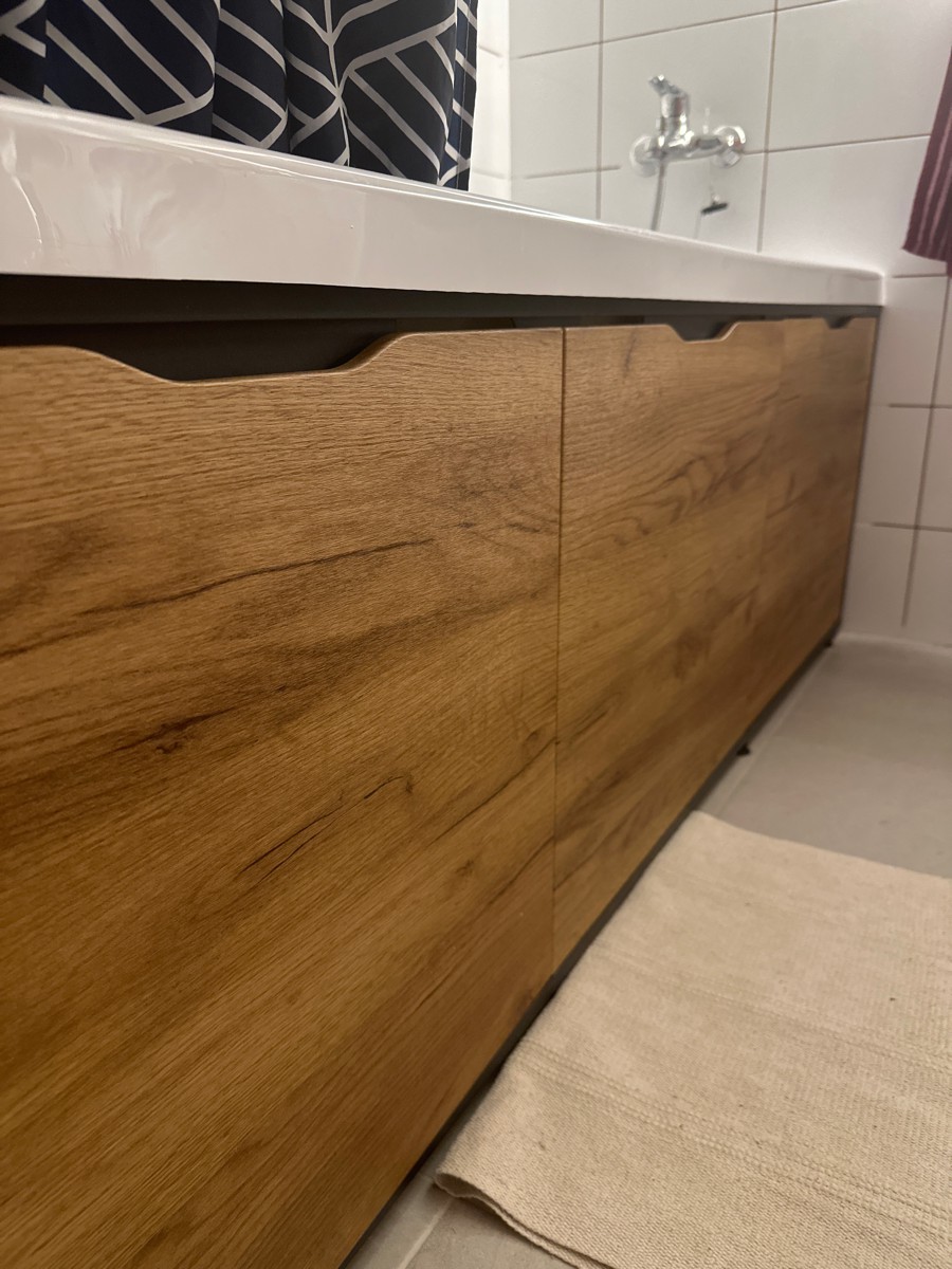 для ограниченного объёма моей ванной комнаты- самый оптимальный вариант. при съёме панели на магнитах- доступ под ванну идеальный. К тому же вся конструкция очень солидная, крепко держится, не "играет". Панели очень добротные, тяжёленькие, стоят как влитые. но при этом легко снимаются