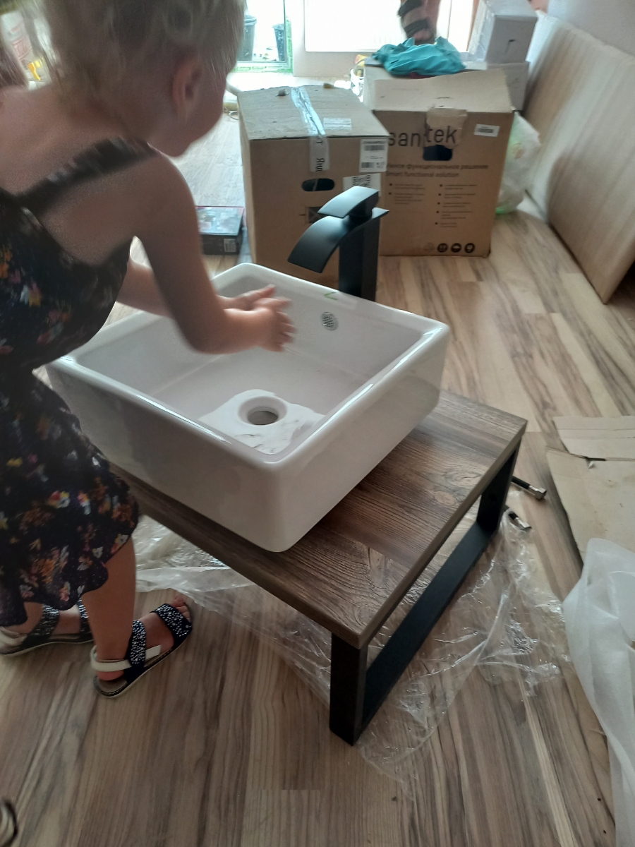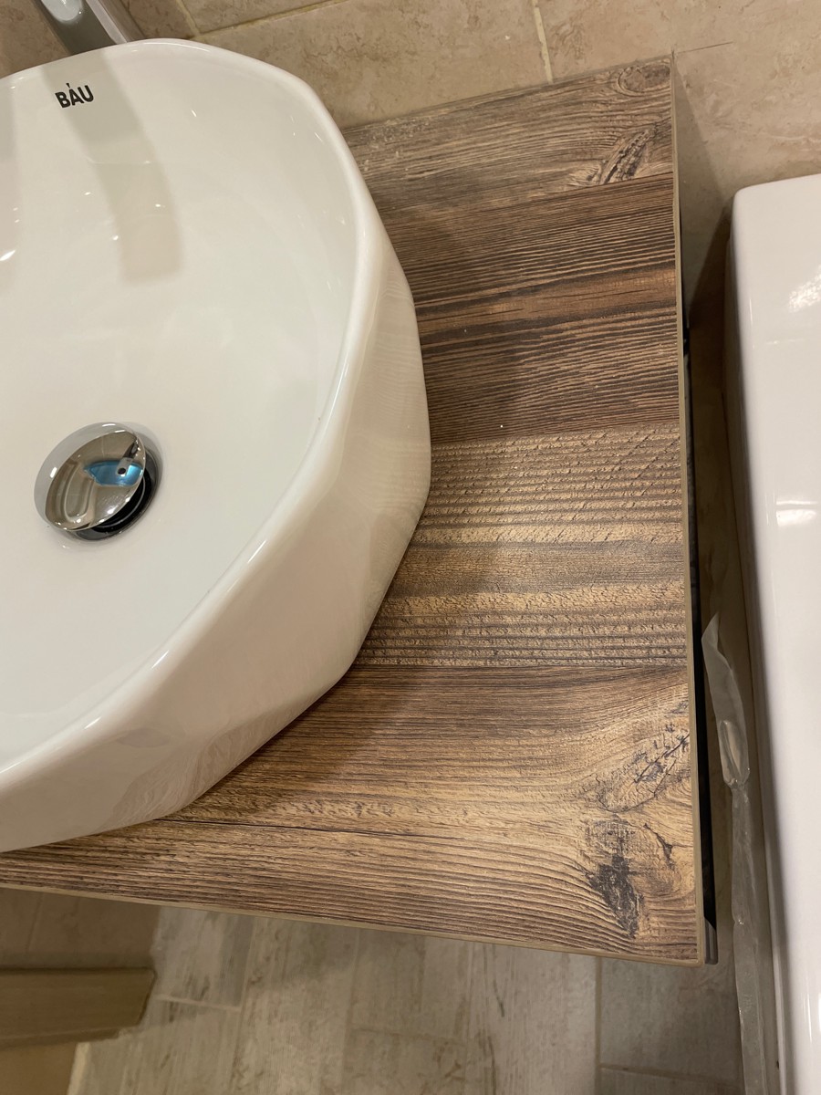 UPD: спустя год пользования, обнаружили, что отверстие не обработано никаким водоотталкивающим средством, а строители не сказали ничего. Столешницу раздуло, где отверстие для крана.