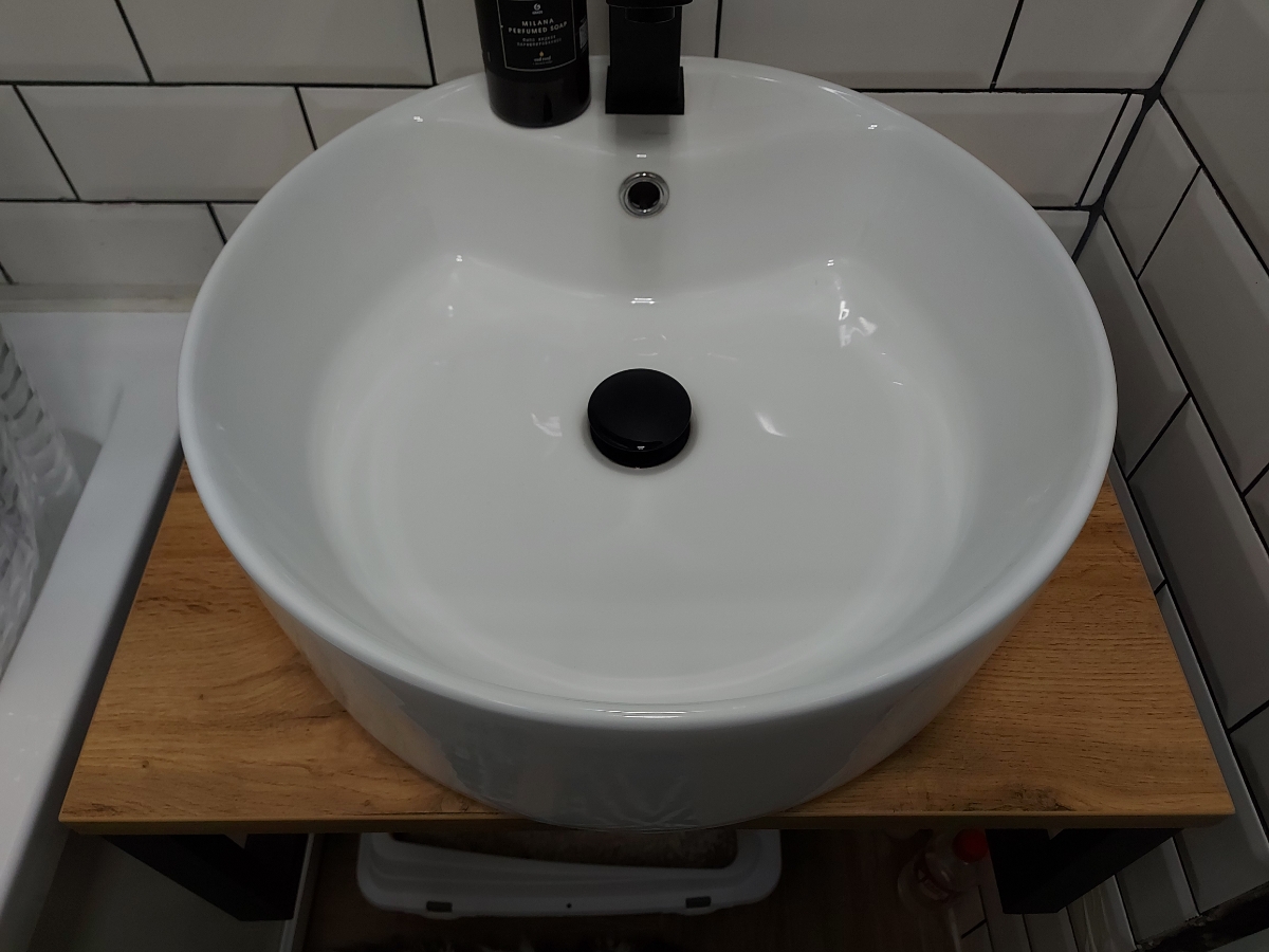 Тумба под раковину нравится, на нее приобрели раковину в виде чаши, очень нравится.