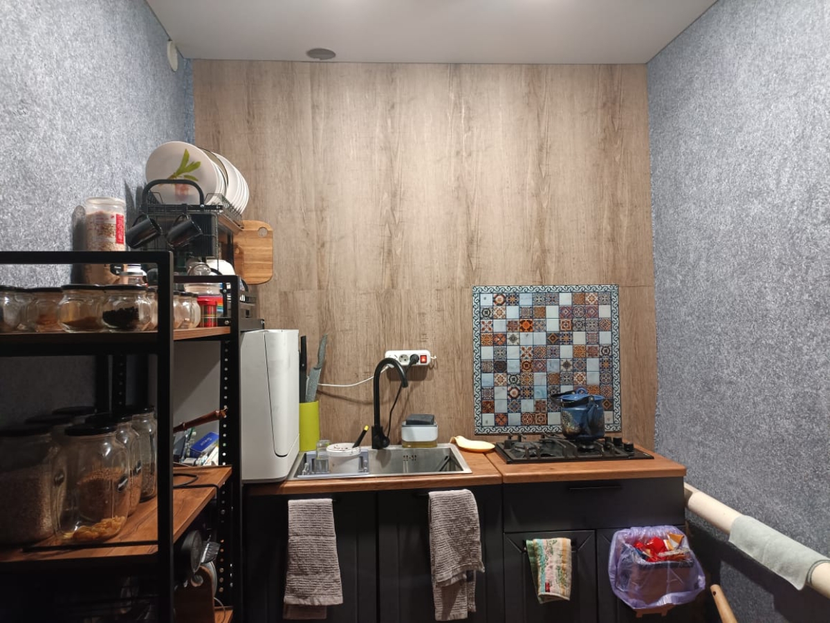 • Древесная текстура столешницы делает интерьер неповторимым.
