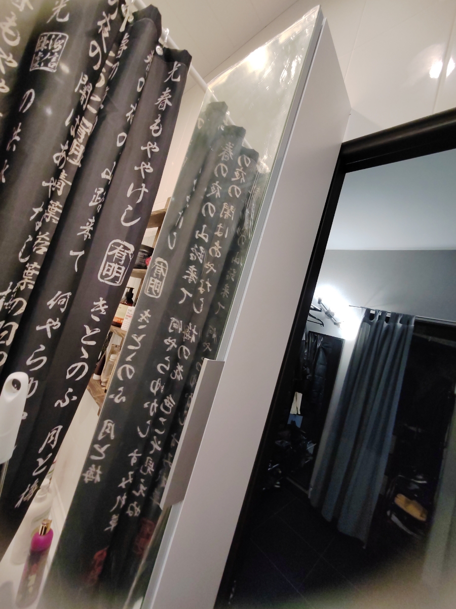 При очень компактных размерах имеет пять полочек вполне достаточной глубины (20 см), чтобы всё было видно и при этом удобно ставить и доставать. Зеркальный фасад позволяет расширить пространство небольшой ванной комнаты. Крепления надёжные и удобные, можно изменить сторону открывания дверцы. Шкаф-пенал очень гармонично вписался в небольшое пространство, буквально растворился в углу ванной комнаты.