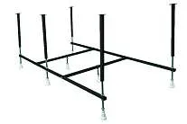 Рамы, которые мы производим, состоят из окрашенного металлического каркаса и пластиковых ножек, которые регулируются по высоте. Конструкция рамы имеет запас прочности до 1000 кг.