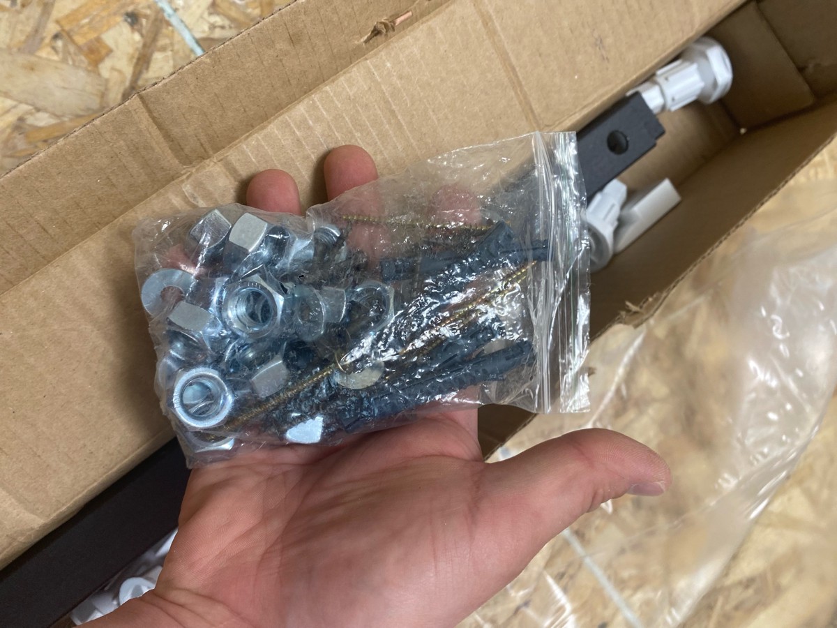 Всё гайки, шпильки, саморезы в нужном количестве. Единственный минус- нет инструкции!
