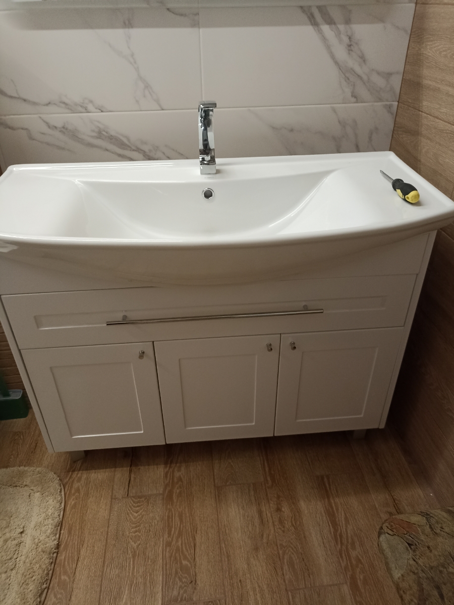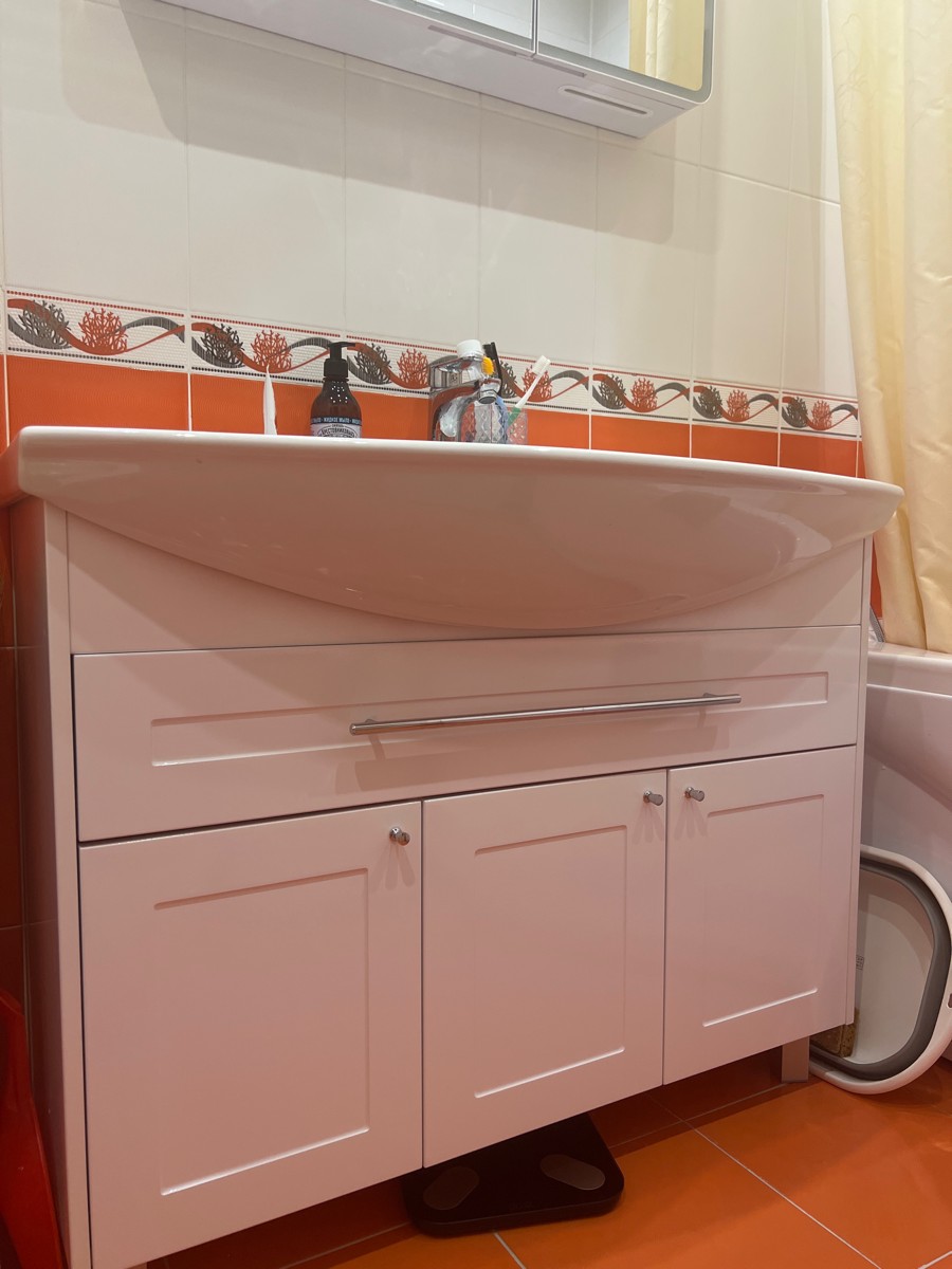 Тумба была заказана в едином комплекте с раковиной. Доставку раковины без объяснения причин накануне дня доставки отменили. Как при покупке обуви: левый ботинок привезли, а за правый вернули деньги. Что мне делать с некомплектом? Установщик был уже заказан для подключения смесителя! Плохо! Дополняю отзыв после отдельной покупки раковины и общей установки: к качеству изделия претензий нет. Саму тумбу рекомендую.