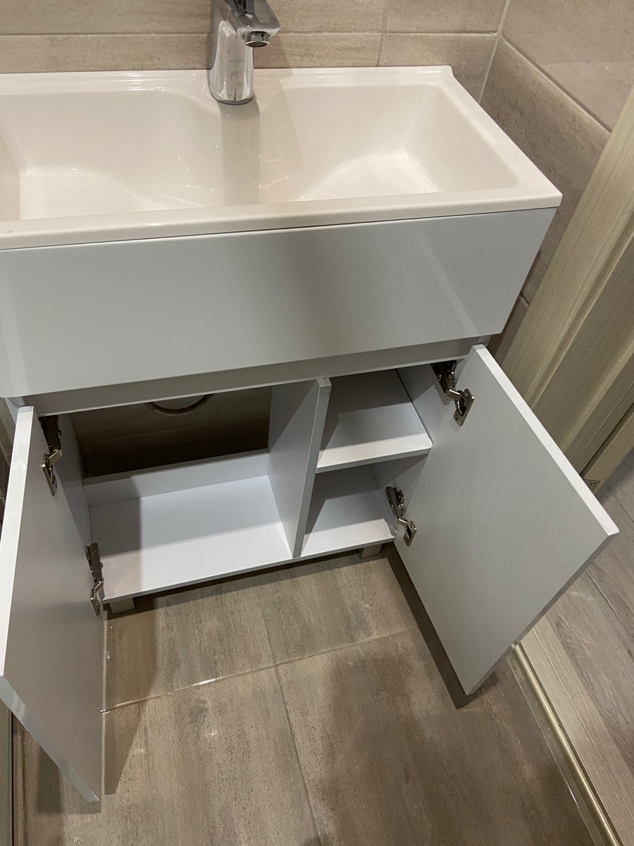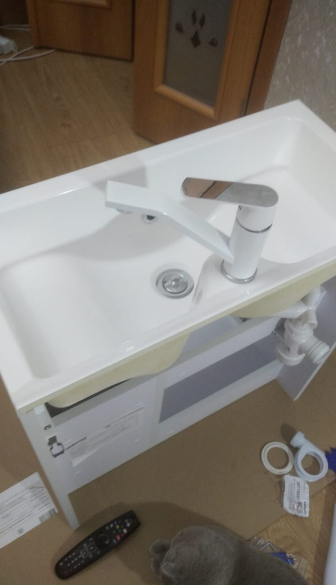 Полностью соответствует описаниям продавца. Тумба пришла собранная, но была лёгкая и удобная для транспортировки, полочка была надёжно спрятана между раковиной и корпусом. Дверцы защищены пленочкой. Трубки прикреплены к корпусом специальной держалкой. Крепится элементарно. Пришло очень быстро. Спасибо продавцу