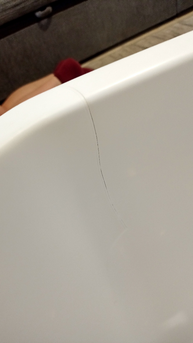 Покупали в августе 2023, эксплуатируется одним человеком. В феврале 2025 обнаружили, что акрил начал разрушаться (см. фото). Неприятно. Направили претензию на завод. После рассмотрения претензии с завода предоставили новую ванну. В августе 2025 установили взамен дефектной. Проверим при эксплуатации. Молодцы, на заводе с пониманием отнеслись к проблеме, мы подняли баллы с ранее сниженного 1 до 5.