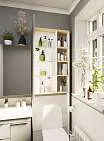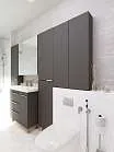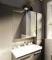 Функциональный шкаф-пенал с зеркалом, не утяжеленный дверями и фурнитурой. Может быть, как правым, так и левым.