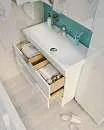 Для бережливой повседневной эксплуатации, тумбы оснащены направляющими и дверными петлями с доводчиками, обеспечивающими бесшумное и мягкое закрывание. В комплекте идет специализированный регулируемый телескопический сифон, гофратрубка, выпуск и донный клапан.