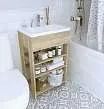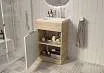 Мебель выполнена в современном минималистичном стиле, для которого характерны правильные геометрические формы, рациональность и эргономичность. Доступная компактная мебель шириной 50 см и глубиной всего 35 см.Текстуры бетона и дерева дают возможность гармонично вписаться в современный интерьер. Тумбы оснащены демпферами и дверными петлями с доводчиками, обеспечивающими бесшумное и мягкое закрывание. В комплекте идет раковина из полимерной керамики.