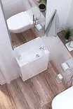 Компактная мебель Tera выполнена в современном минималистичном стиле, для которого характерны правильные геометрические формы, рациональность и эргономичность. Для бережливой повседневной эксплуатации, тумбы оснащены демпферами и дверными петлями с доводчиками, обеспечивающими бесшумное и мягкое закрывание.