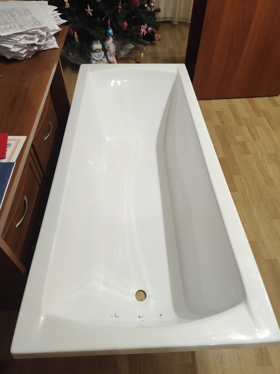 Хорошая ванна, привезли отлично упакованную, все было целое. Запах сначала конечно был сильный , но постепенно выветрился и сейчас в ванной уже абсолютно не пахнет. Тонковата и на свет просвечивает немного. Вроде крепкая, не прогибается от веса взрослого человека до 95кг. Устанавливали на направляющие к стене и на каркас который шел в комплекте. По размеру была не 165см а 163,5см, зато практически идеально ровная. Считаю что комплект своих денег стоит.