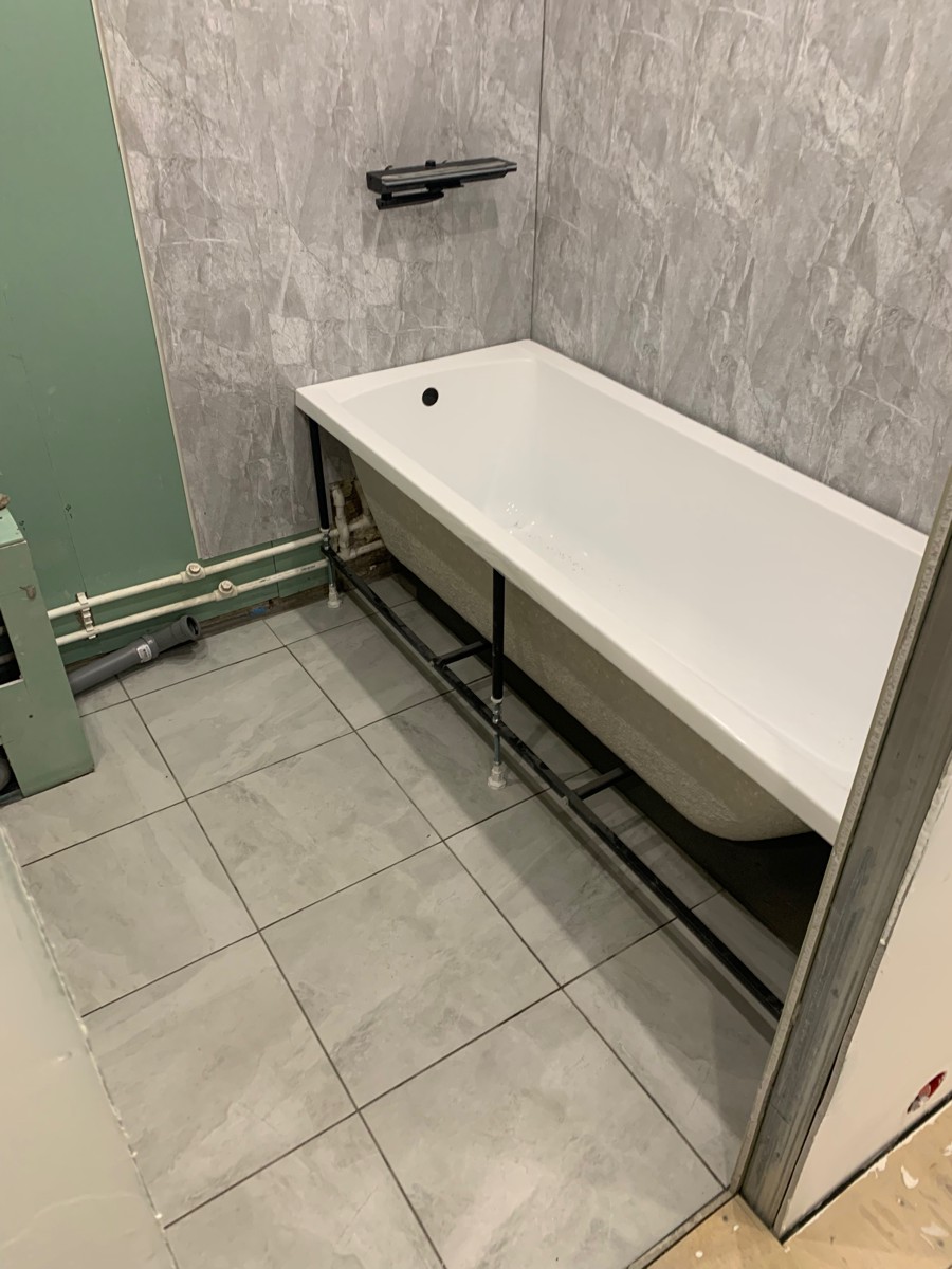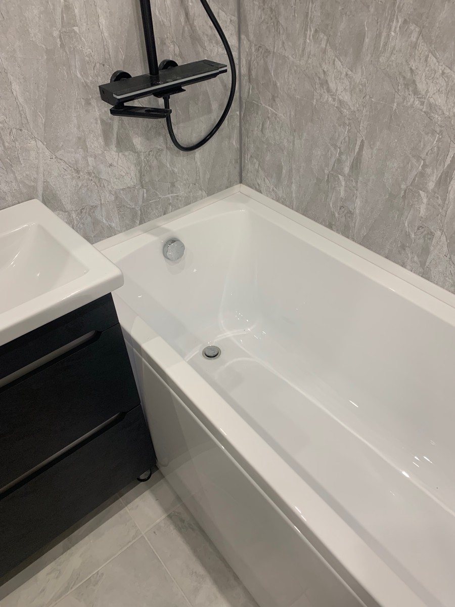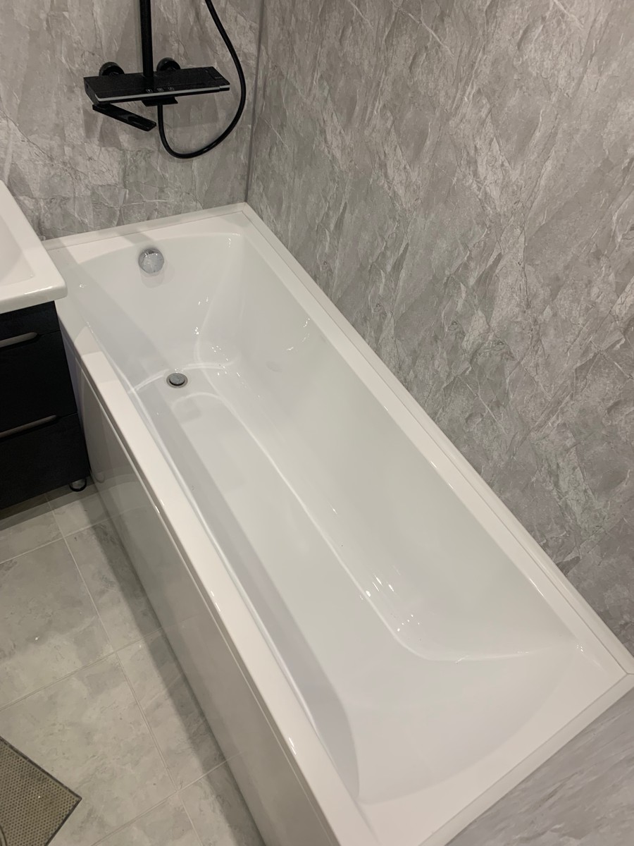 Комплект симметричной акриловой ванны «MODERN» с рамой, сливом-переливом, панелью – готовое решение для ванной комнаты.