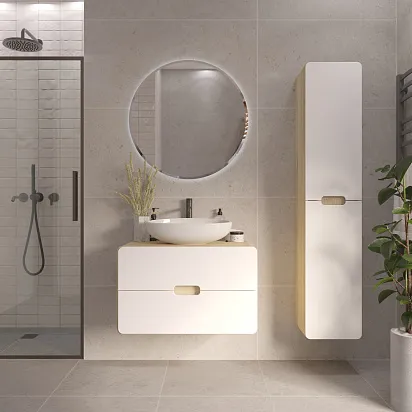 Подвесной пенал Vortex – современное минималистичное решение для хранения в ванной. Плавные скругленные края, белый фасад с древесным корпусом символизируют гармонию, создают ощущение легкости и безопасности. Это особенно актуально в ванной комнате, где важно чувствовать себя комфортно и расслабленно.