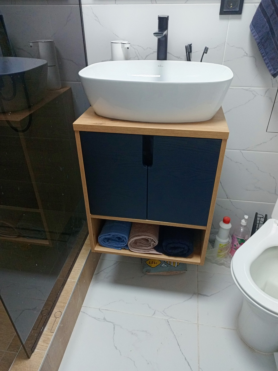 Замечательная тумба! Дверцы с доводчиками! Рабочие накосячили с размером душа. В итоге пришлось искать тумбу 50 см. Выбор я скажу - небольшой, еще и раковина уже была куплена (40 см) . Тумб такой глубины практически нет. И вот , нашла! Еще и такую красивую! Обратите внимание - дверцы синие!!! Я думала серые , даже зеркало серое купила. Но мужу синяя даже больше понравилась!очень ею довольны. Проблем в сборке не возникло!