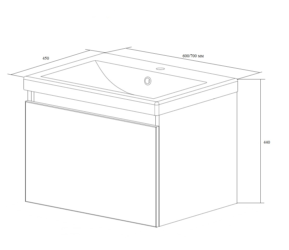 Тумба Aris mini 70П (700х440х450) 1я антрацит/монолит дарк раковина