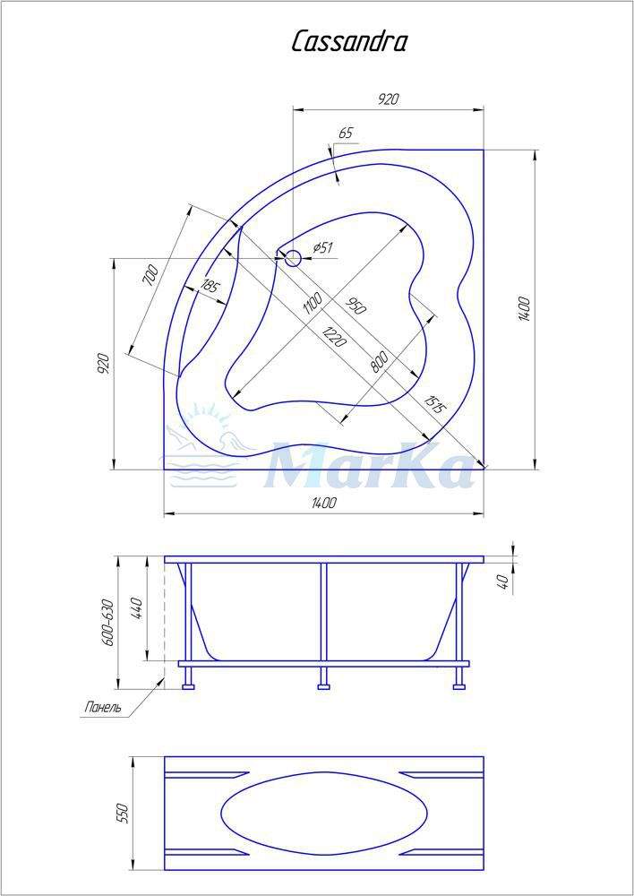 Ванна КАССАНДРА/CASSANDRA 1400х1400 ПР