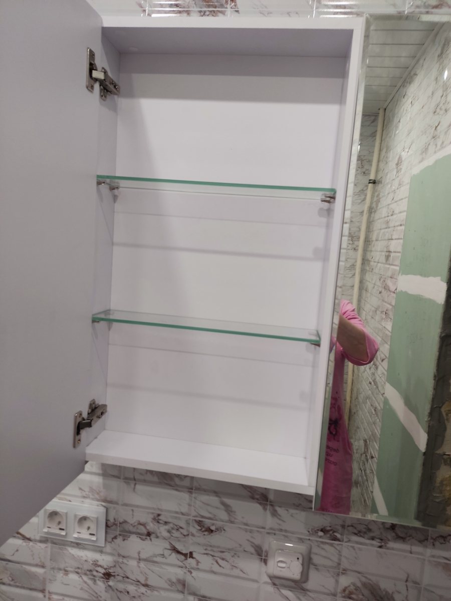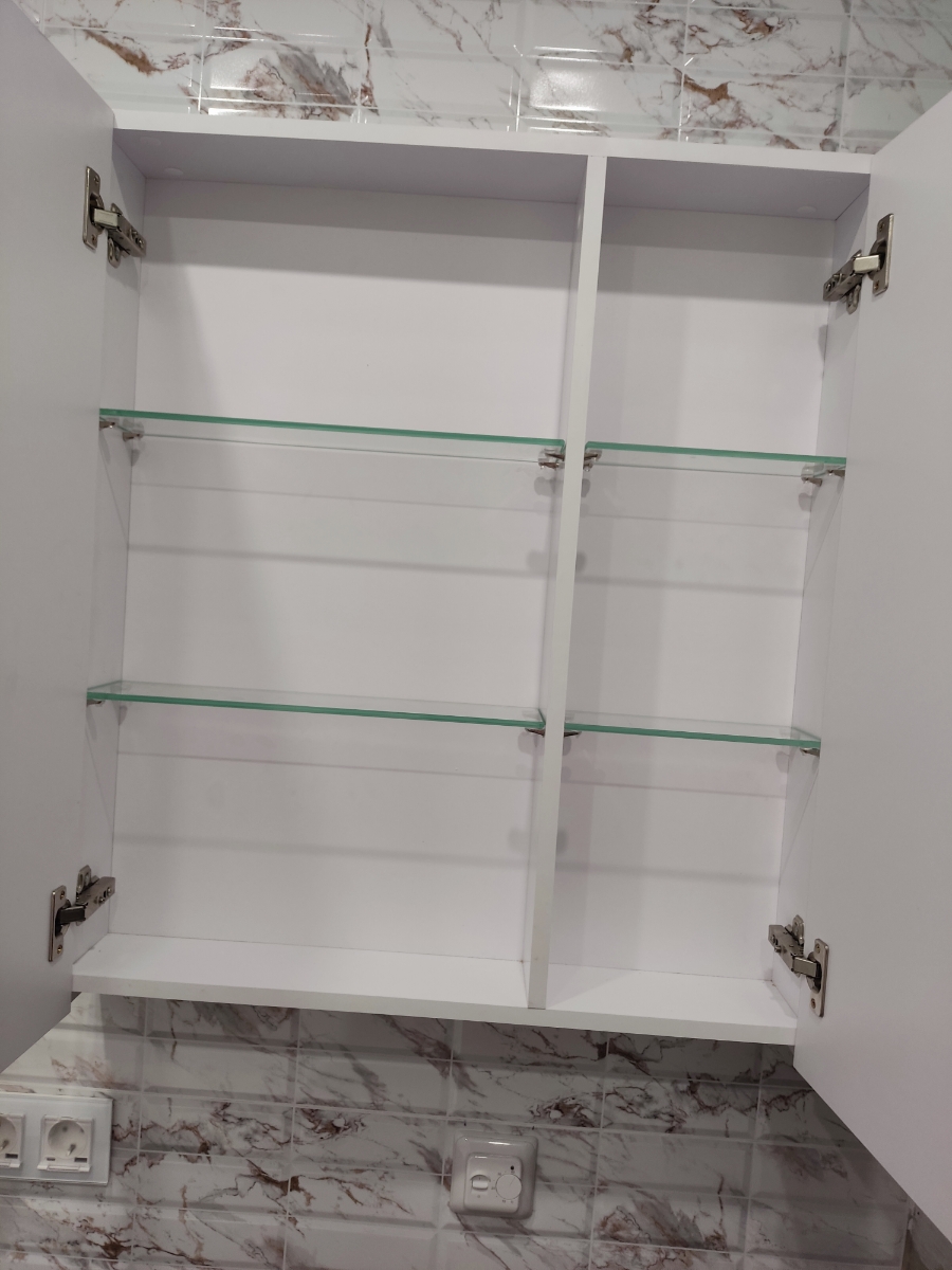 Стильное и универсальное зеркало-шкаф, которое подойдет для абсолютно любой ванной комнаты вне зависимости от ее стилистического и цветового оформления. А все потому, что в этой модели нет абсолютно ничего лишнего - только лаконичные линии, четкие формы и безупречная функциональность. За стеклянным полотном французского или бельгийского производства, изготовленным из серебряной амальгамы, скрываются три вместительные полки для косметики, личных вещей и аксессуаров. Cам корпус модели выполнен из МДФ и покрыт пленкой ПВХ для превосходной устойчивости к воздействию влаги.